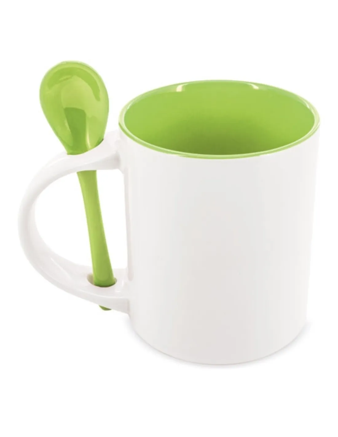 La cucharilla y el interior de la taza son de color verde