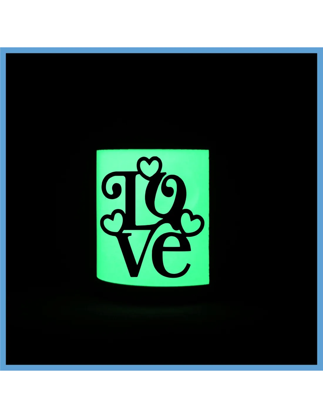 Puedes crear un diseño oscuro y en la oscuridad brillarán las zonas claras de la foto o dibujo, puedes poner textos o fotos sueltas y brillarán las zonas no impresas.